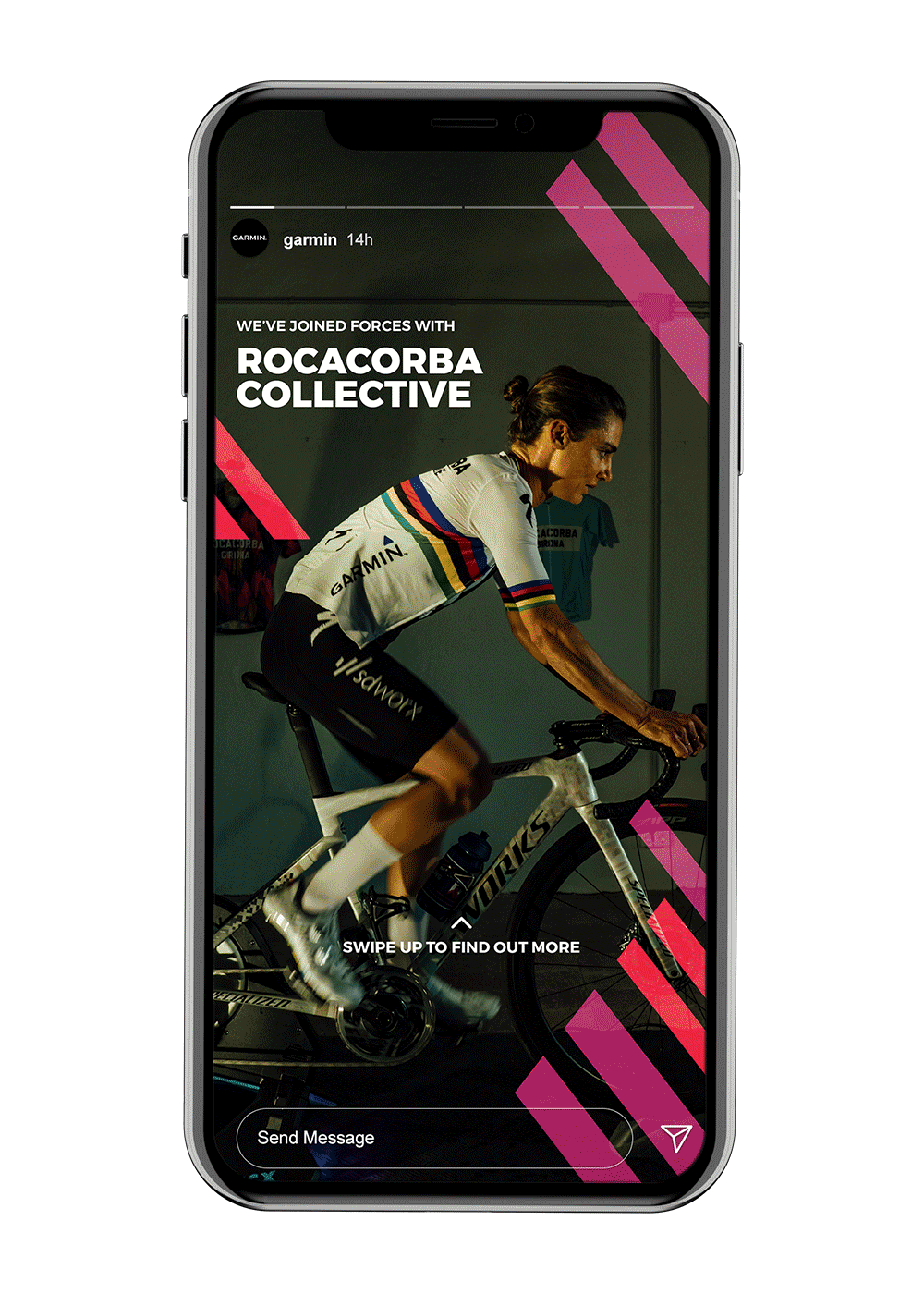 I worked with Rocacorba to adapt the original brand and apparel for the virtual world to incorporate Rocacorba Collective, as well as creating a suite of engaging assets to launch with. The team’s identity was linked heavily to that of the main Rocacorba brand, with a series of new energetic patterns, intriguing graphics combined with dynamic display typography to capture the movement and energy of the team. Worn by previous cycling eSports World Champion, Ashleigh Moolman Pasio, alongside team members during their weekly Zwift community rides, the brand now has an exciting identity to attract riders and sponsors alike.